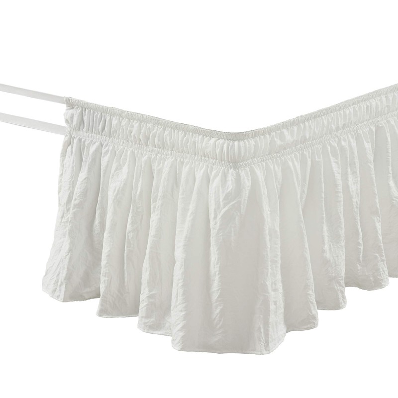 Lush Decor Ruched Ruffle Elastic Easy Wrap Around Bedskirt, Queen/King/Cal King, White
