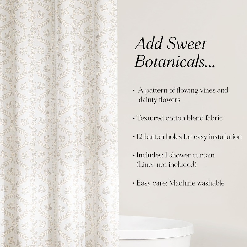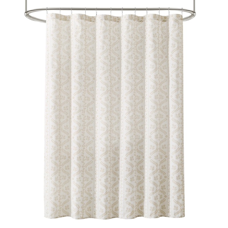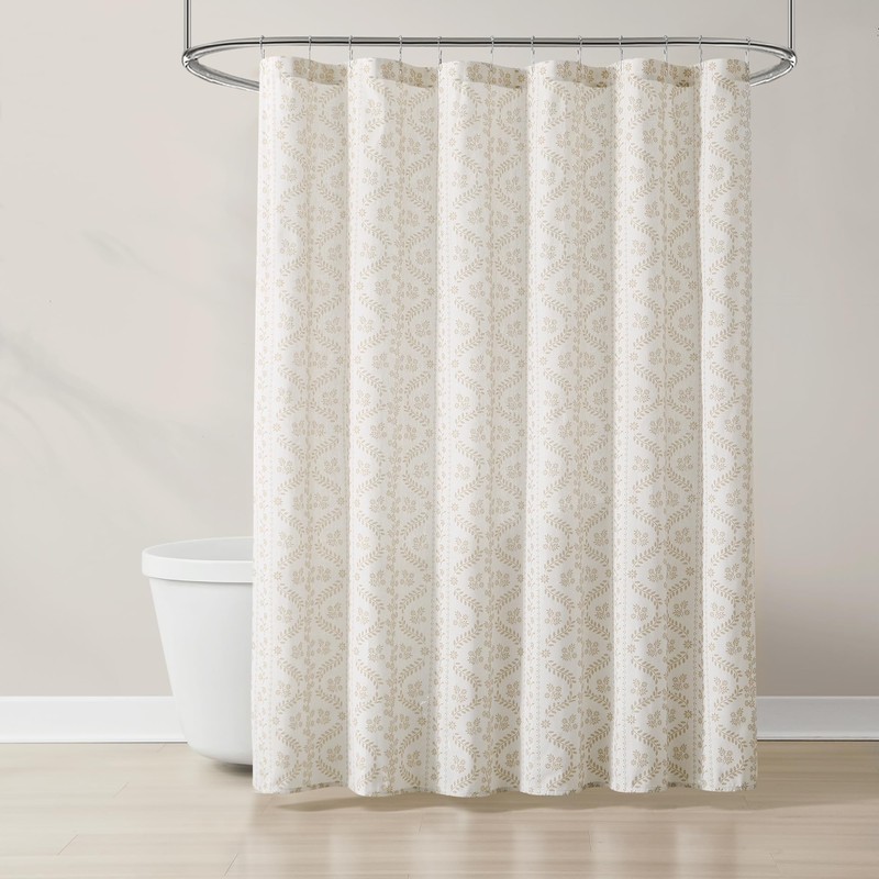 Lush Decor - Shower Curtain, Textured Linen Design, Delicate Floral Bathroom Decor (Doreen Neutral, 72" x 72")