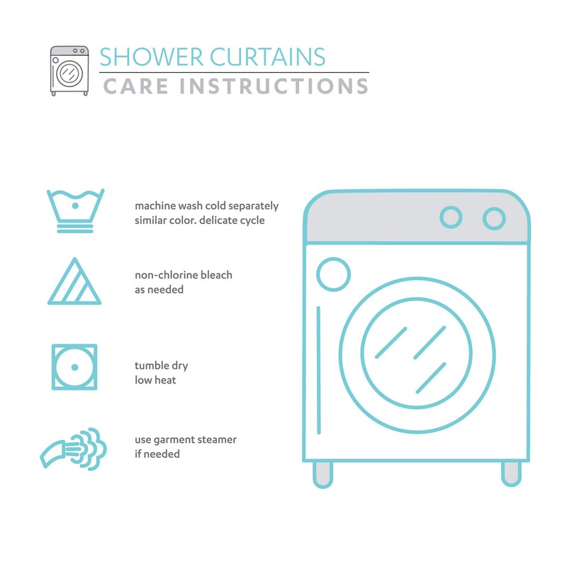- For your convenience, this shower curtain is safe to machine wash and tumble dry. Refer to the care label for full instructions.