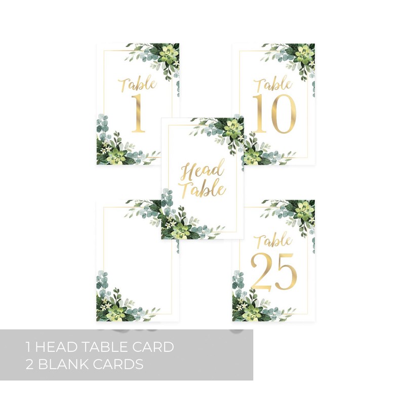 - Includes: Set of 28 table number cards. Tables 1-25, head table and two blanks. Convenient 4" x 6" cards printed full color, front and back on high quality card stock.