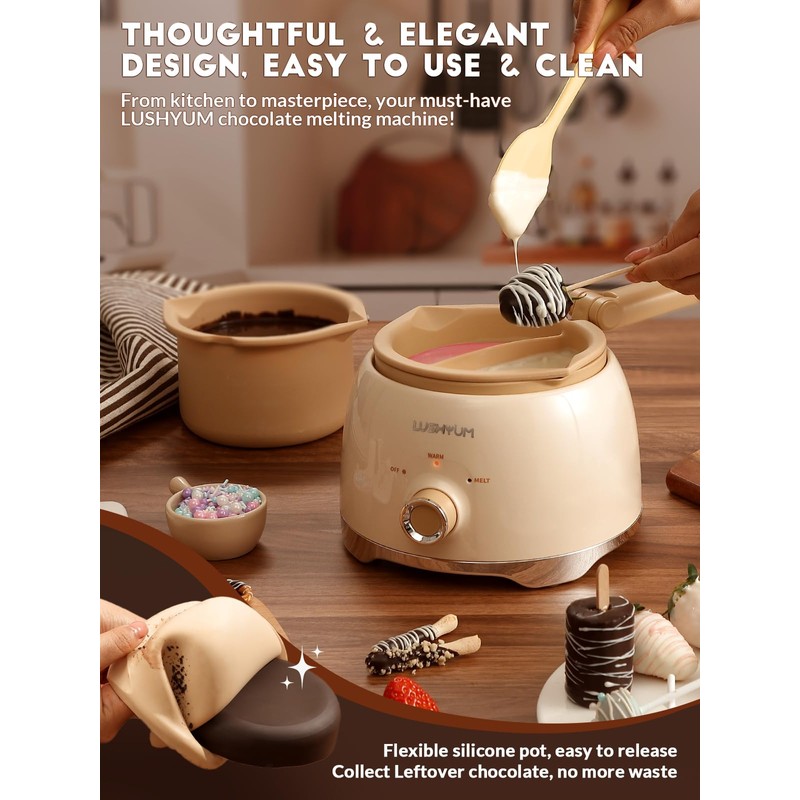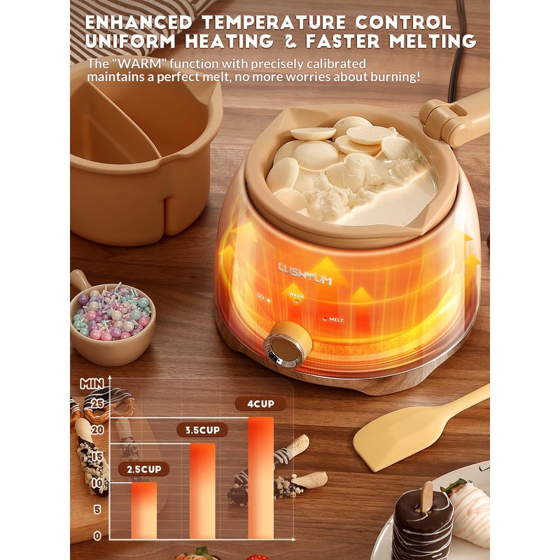 • Surprise Gift for Chocolate Lovers: Looking for the perfect gift that'll melt hearts? This is it! Whether it's for a birthday, holiday, or just because, LUSHYUM candy melting pot is the dream gift for any chocolate lover. Imagine their excitement as they making chocolate covered strawberries, cake pops, or custom chocolates. Ready to surprise them with a gift they'll never forget?
