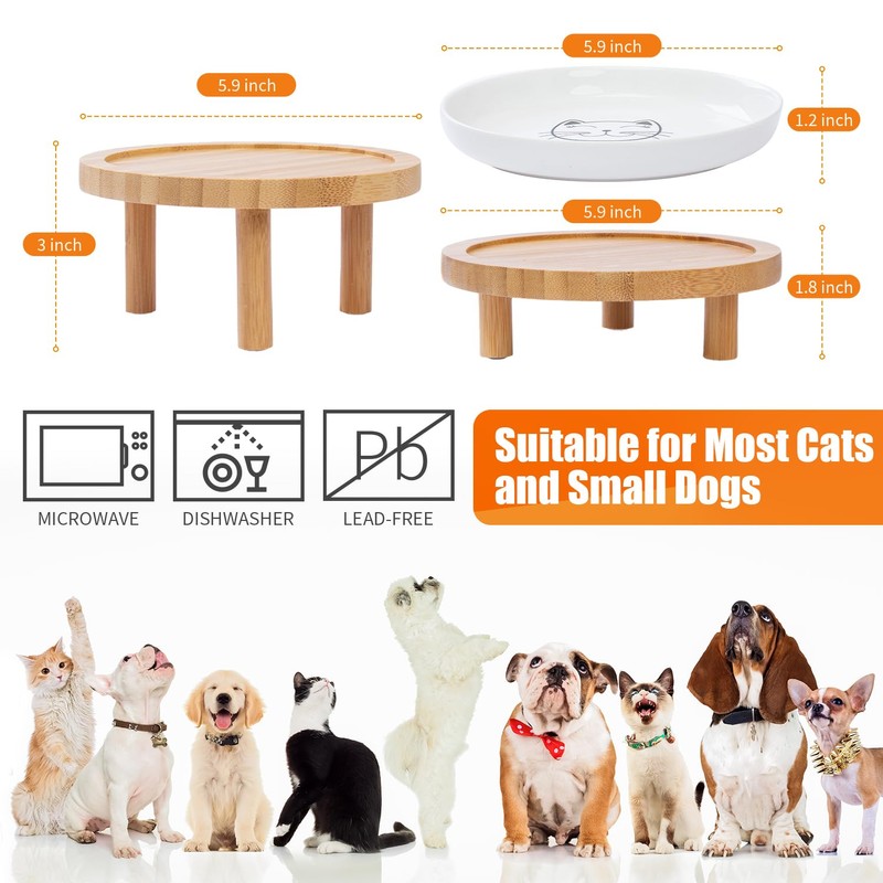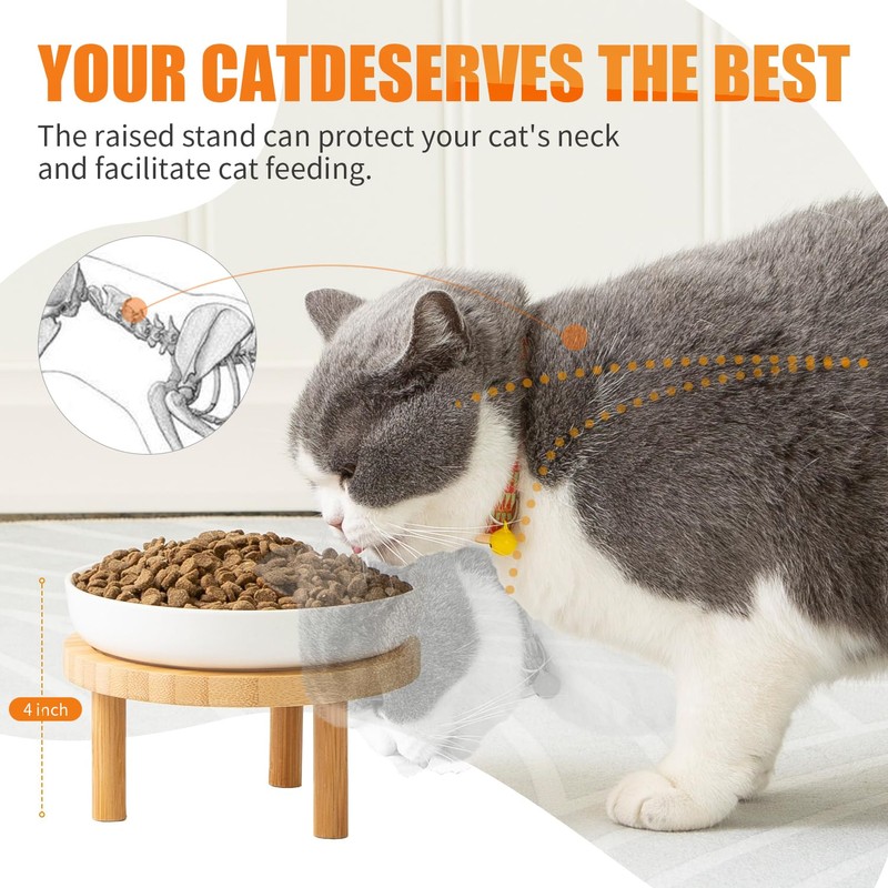 - 【Reduce Neck Burden】: the bamboo frame raises the cat feeding plates ceramic to a more convenient height, your cat could comfortably eat and drink without having to strain his neck down, reduce the pressure on the neck or back. It also helps with swallowing and digestion. Alleviates their occasional vomiting.