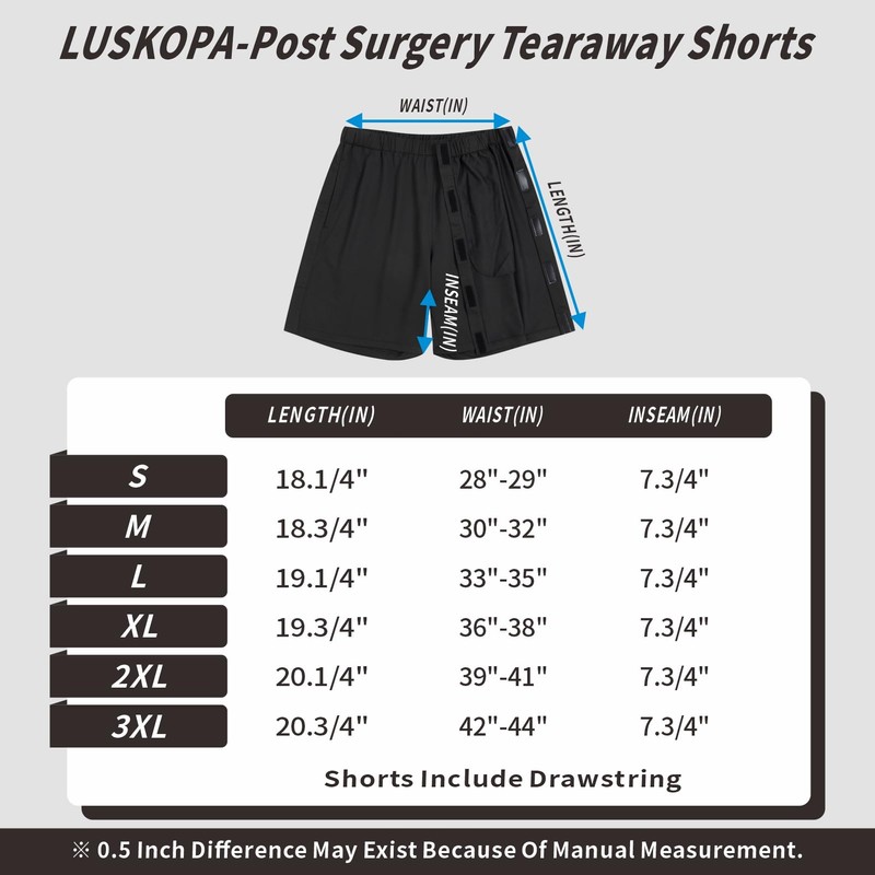 - Snap Open Design:The men's breakaway shorts are designed with 2 sides full tear away side hook and loop, from top waist to bottom with Magic Sticker.The unique hook and loop tearaway design makes shorts easy to wear. The shorts are easy to unfasten from both sides in a second, no need to take off your sports shorts. It's definitely a must-have for anybody with limited mobility, perfect for post hip/leg/knee surgery patients' recovery therapy.