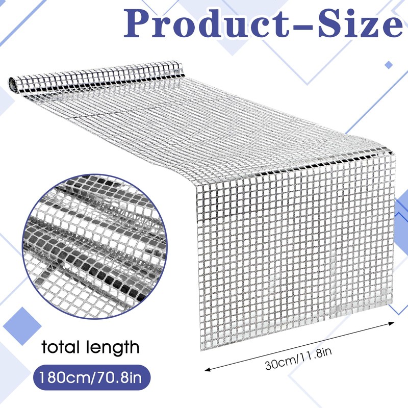 - đăSize InformationăDisco party table runner measures approximately 30 x 180cm/ 11.8 x 70.8inch. Silver runner for table can meet the daily use of most of your home or restaurant tables, adding beautiful color to your restaurant or room.