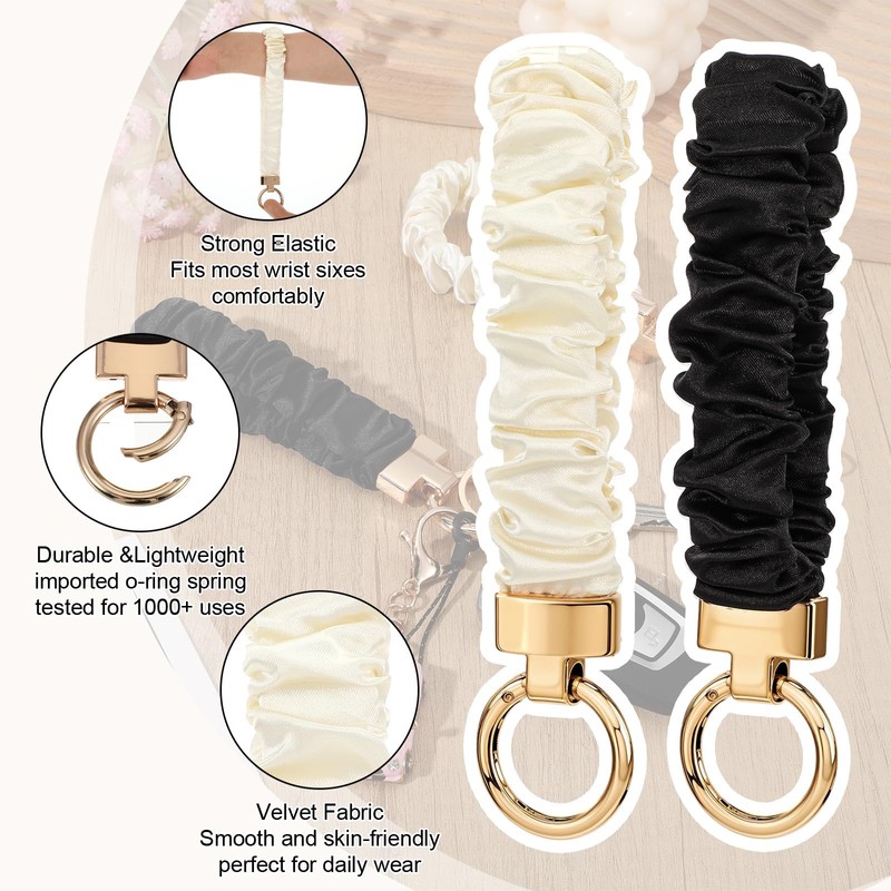 Lusofie 2 Pcs Wrist Keychain Bracelet Scrunchie Keychain Wristlet Car Key Cha...