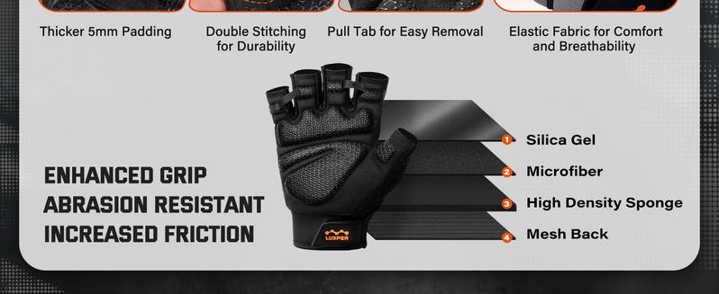 【Comfy & Breathable】To keep you comfortable and dry during training, Lusper workout gloves use high-density elastic breathable fabric, which makes the back of the hand have good breathability and elasticity. And there is a towelling panel on the back of the glove for wiping away sweat. The gym gloves are ideal for general workouts, weight lifting, exercise, gym training, and cycling.