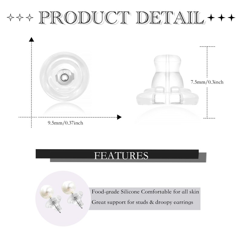 - 【Hypoallergenic and Comfortable Earring Backs】Made of 18K gold plated silver metal earring backs and food grade clear silicone materials, pliable and comfortable to wear. No Nickel and Lead,It will not irritate your skin.This silicone earring backs replacements are suitable for almost any type of earrings, such as studs,hoops and drop earrings.