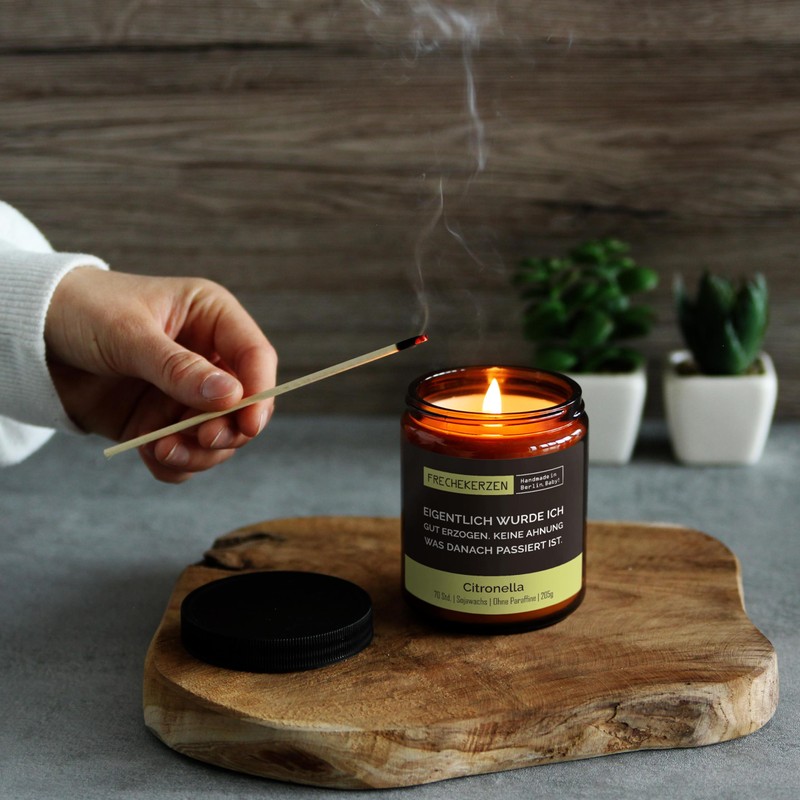 - OHNE ZUSÄTZE: FRECHEKERZEN sind vegan und enthalten keine gesundheitsbedenklichen Brenngase/Schadstoffe wie Paraffin, Petroleum oder Palmöl, keine Pestizide oder Herbizide. Außerdem kommen - dank Sojawachs - keine Bienen zu Schaden.