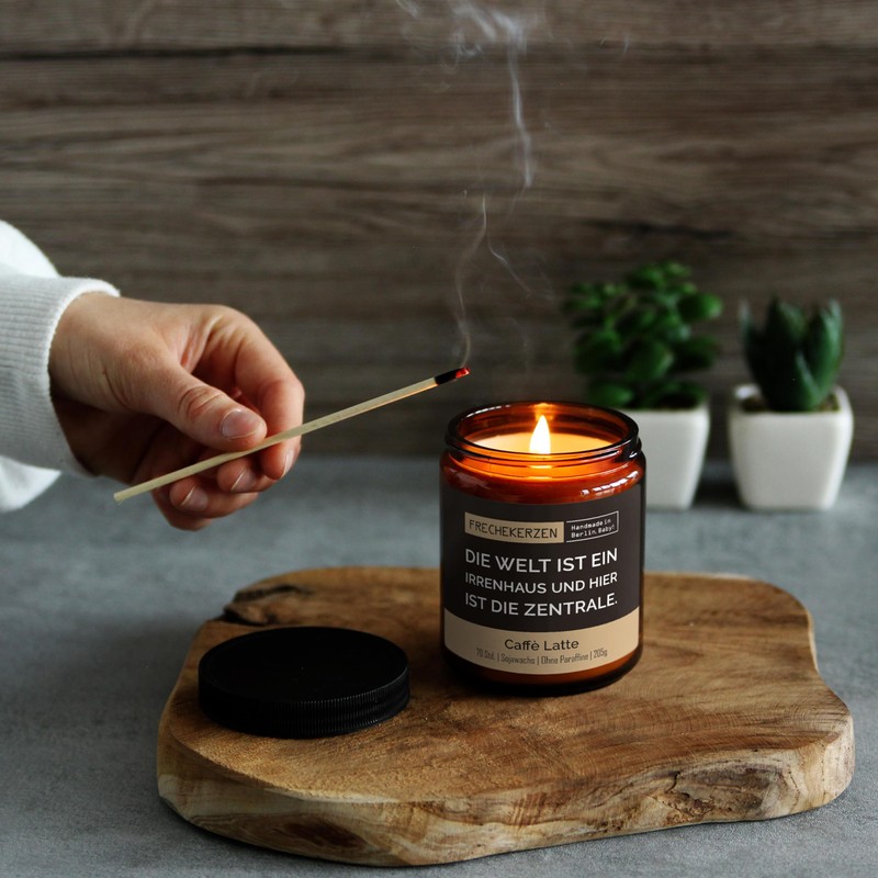 - SOJAWACHS DUFTKERZE: Kerzengröße: 9,2 x 7,3 cm; Gesamtgewicht: 420g. Jede Kerze wird schmunzelnd von uns in Berlin hergestellt. Unsere Kerzen bestehen aus 100 % natürlichem Sojawachs und haben einen Baumwoll-Docht.