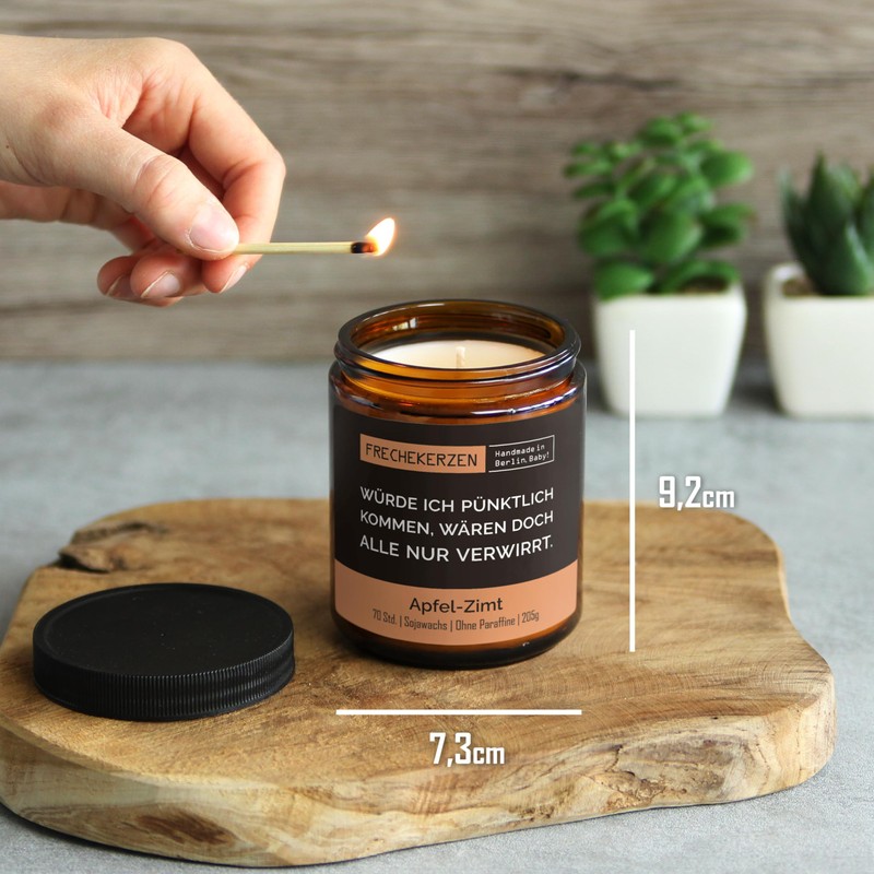 - SOJAWACHS DUFTKERZE: Kerzengröße: 9,2 x 7,3 cm; Gesamtgewicht: 420g. Jede Kerze wird schmunzelnd von uns in Berlin hergestellt. Unsere Kerzen bestehen aus 100 % natürlichem Sojawachs und haben einen Baumwoll-Docht.