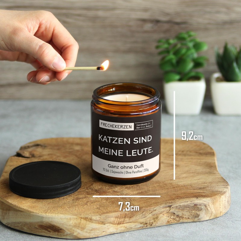- SOJAWACHS DUFTKERZE: Kerzengröße: 9,2 x 7,3 cm; Gesamtgewicht: 420g. Jede Kerze wird schmunzelnd von uns in Berlin hergestellt. Unsere Kerzen bestehen aus 100 % natürlichem Sojawachs und haben einen Baumwoll-Docht.