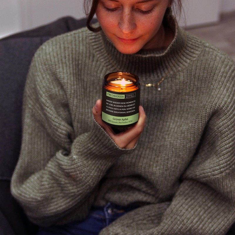 - SOJAWACHS DUFTKERZE: Kerzengröße: 9,2 x 7,3 cm; Gesamtgewicht: 420g. Jede Kerze wird schmunzelnd von uns in Berlin hergestellt. Unsere Kerzen bestehen aus 100 % natürlichem Sojawachs und haben einen Baumwoll-Docht.