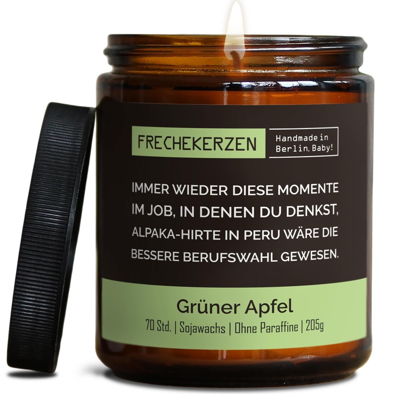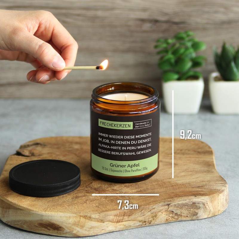 Lustige Duftkerze mit Spruch für Kollegen | Handgemacht aus Sojawachs | In Geschenkbox | Nachhaltiges freches Geschenk für Arbeitskollegen, Mitarbeiter Chef Kollegin |Apfel