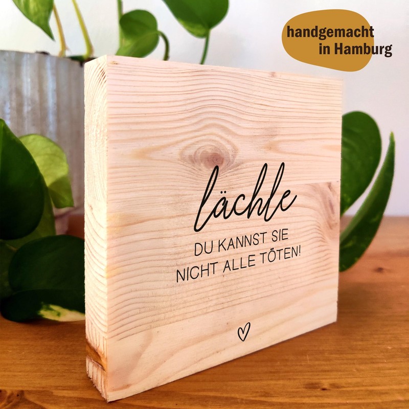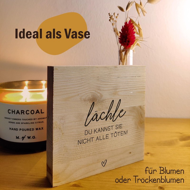 Lustige Geschenke Für Männer - Lächle! Du kannst sie nicht alle töten Holzbild + Reagenzglas zum Hinstellen opt. als Vase oder Geldgeschenk - Witzige Geschenke Für Männer, Lustig, Holzbilder Deko