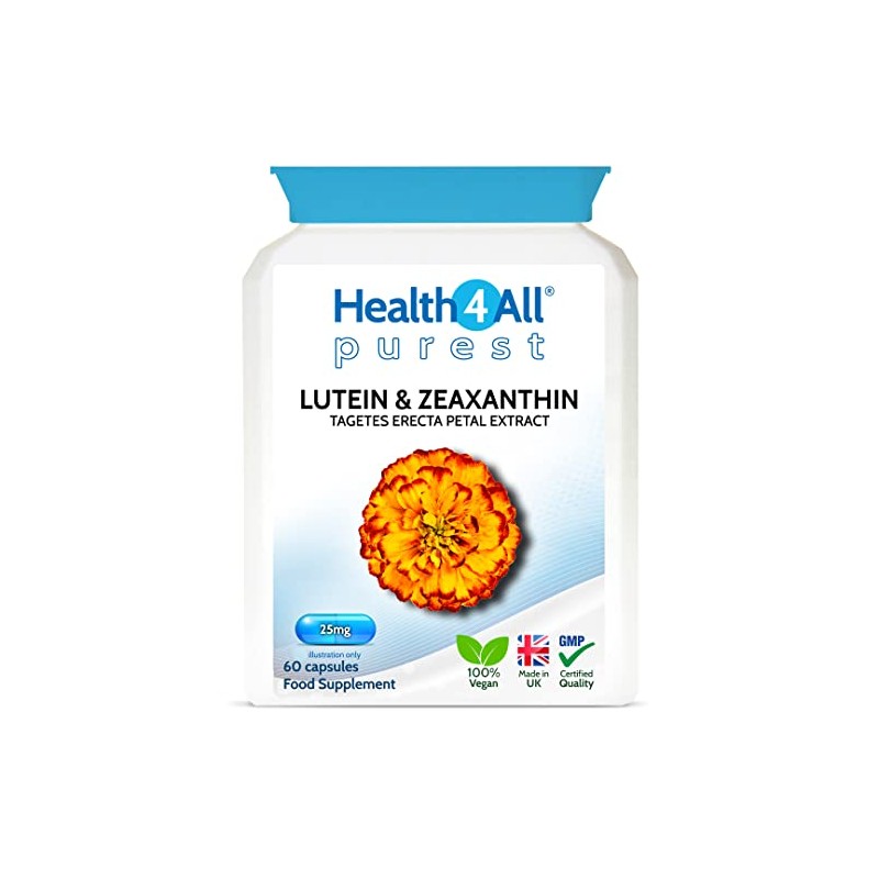 Lutein 25mg with Zeaxanthin Capsules (not Tablets) for Eye Health and Blue Light Protection. Vegan. Made in The UK by Health4All, 60 Capsules (V)