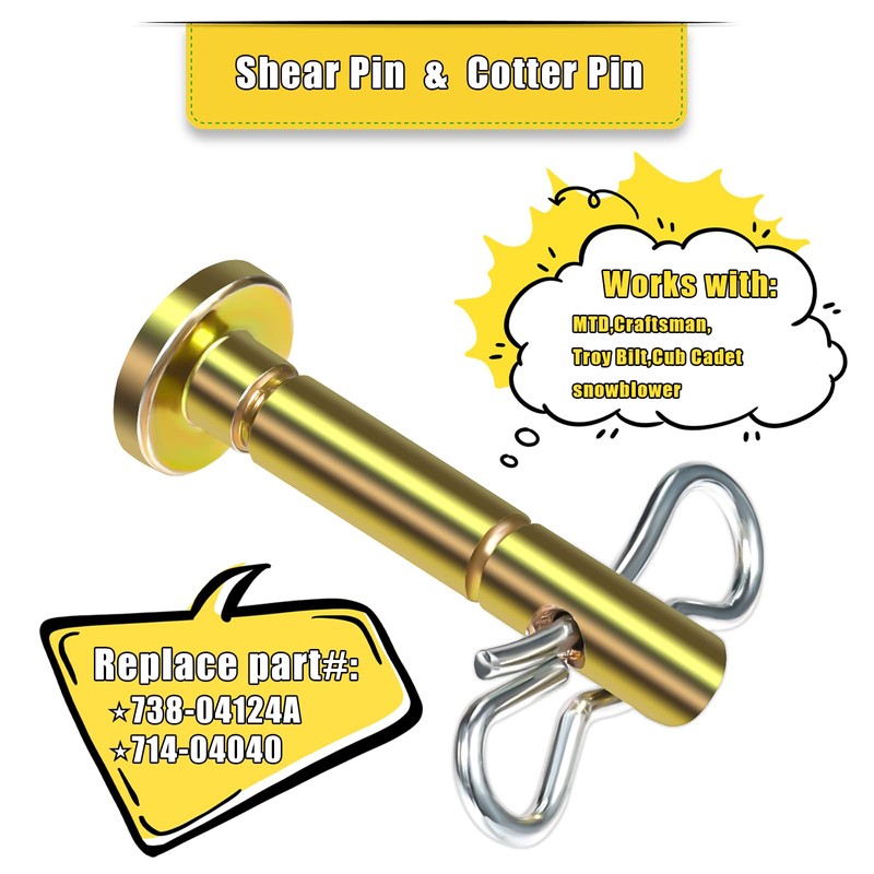 - Package Content: You will receive 10 pieces of shearing pins with size of 4.18x1.37cm /1.6x3.5inch and 10 pieces of cotter pins with size of 3.37x1.35cm /1.3x0.53inch, you can replace the models 738-04124A and 714-04040 accordingly, and the quantity is enough to meet your daily needs.