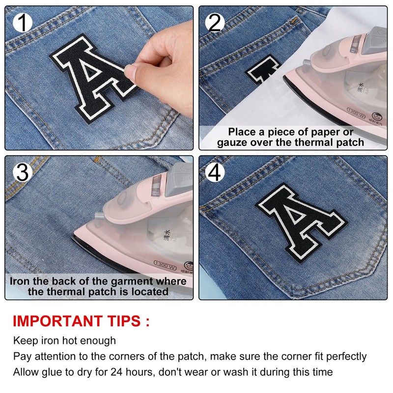 - Pack of 5 Letter Patches for Ironing and Sew On 8 cm Decorative Letter Patches for Iron-On Fabric Jackets Jeans Handbags Backpacks Hats DIY Work S