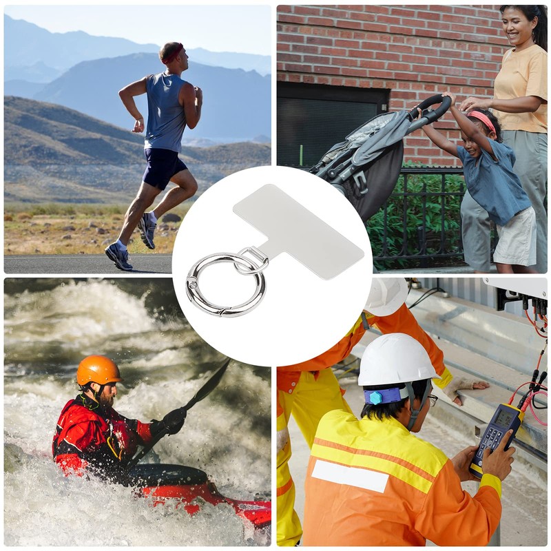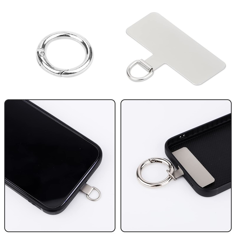 LUTER Phone Strap Patch, Silver Iron Mobile Phone Lanyard Pads with 1 Metal Spring Ring, Robust Portable Mobile Phone Lanyard Patch for Mobile Phone Replacement Part