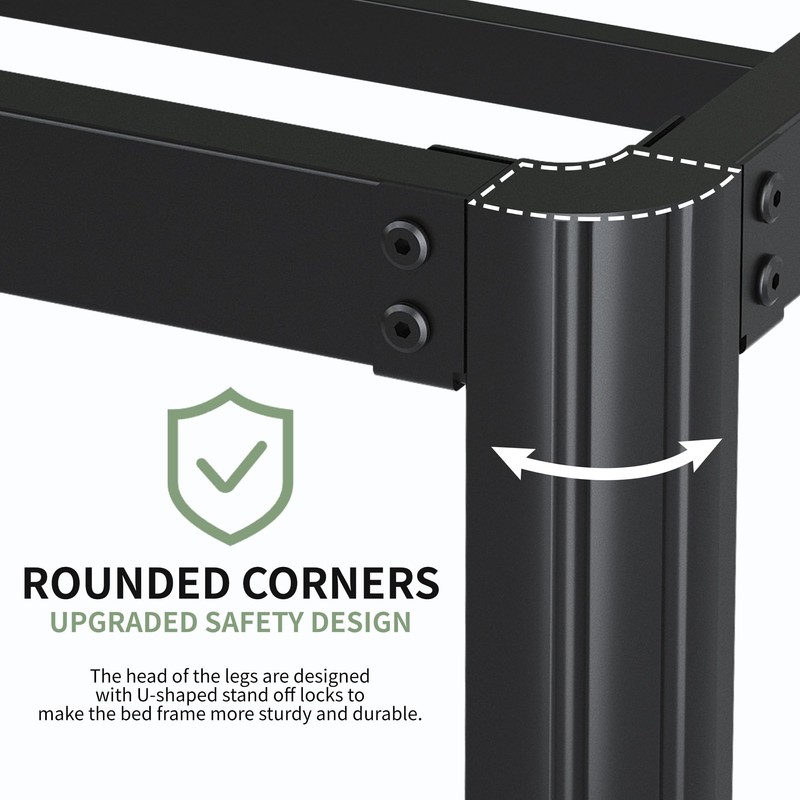 • Bed frame Twin XL size high profile with rounded cylindrical of front legs to prevent bumps injuries.