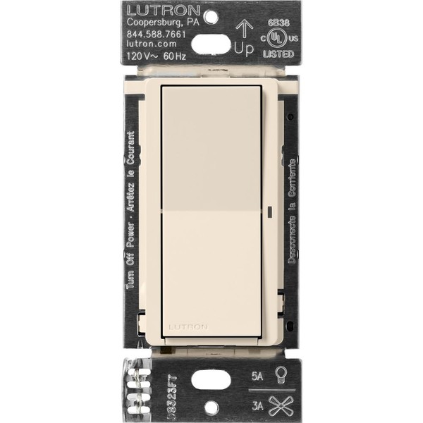 Lutron Caseta Smart Lighting Claro Smart Switch for Light Bulbs and Fans, Works w/ Alexa, Apple Homekit, Google Home (Hub Required), Neutral Required, 5A Single-Pole/3-Way, DVRF-5NS-LA, Light Almond