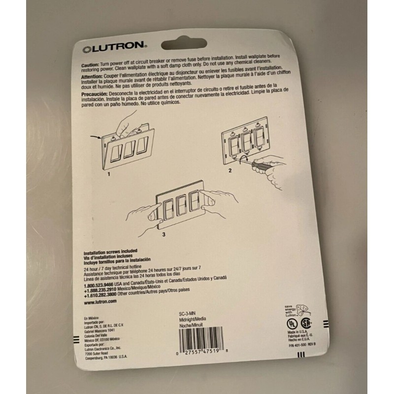 Lutron Triple / 3 Gang Wall Plate, Black Satin Finish NEW in package.