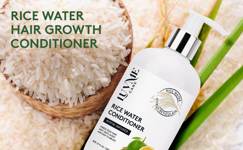 Luv Me Care Rice Water Hair Growth Conditioner 10 Fl Oz with Biotin, Improve Strength, Volume, and Shine, Deep Conditioning for Dry, Frizzy, or Curly Strands