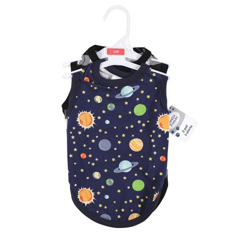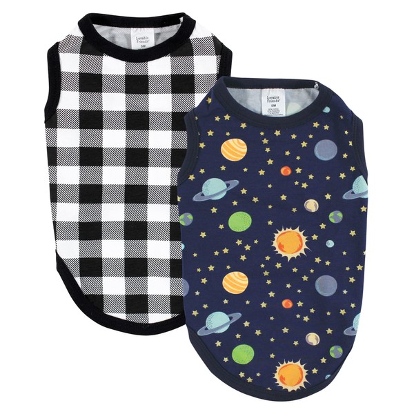 Luvable Friends 2 Pack Space Plaid Cotton Dog Cat T Shirts Small