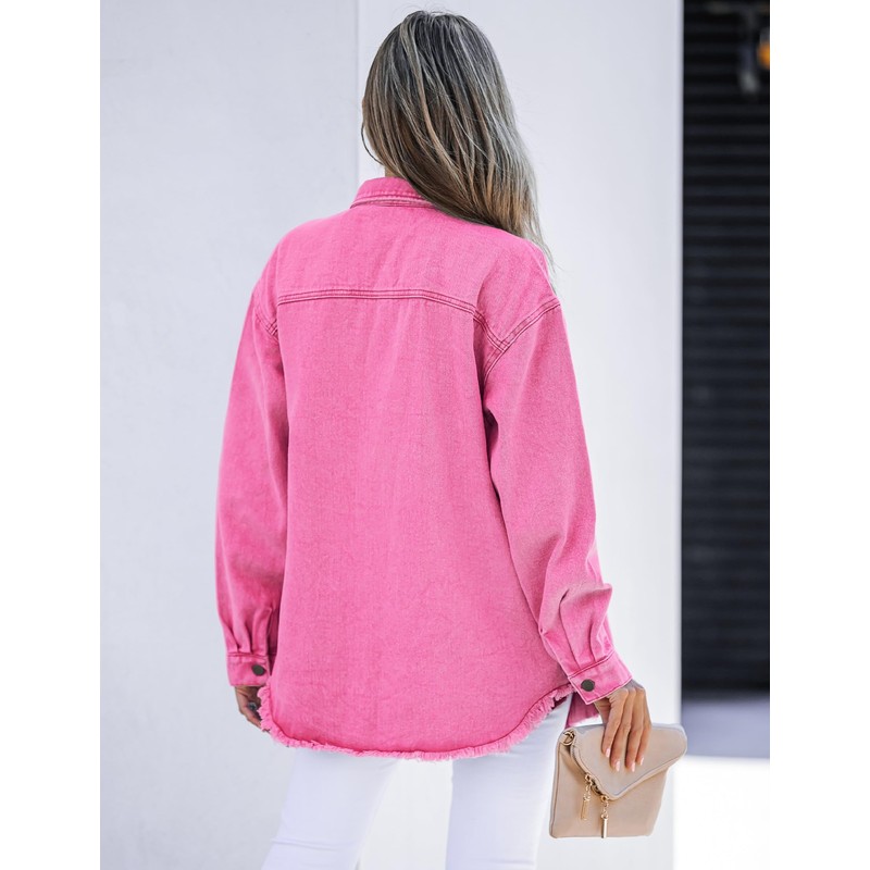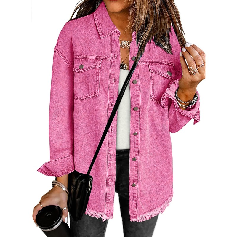 luvamia Womens Fashion Denim Jacket For Women Oversized Jean Jacket For Women Pink Jean Jacket Magenta Pink Jean Jacket Womens Oversized Button Down Shirts For Women Size X-Large Fits Size 16 Size 18