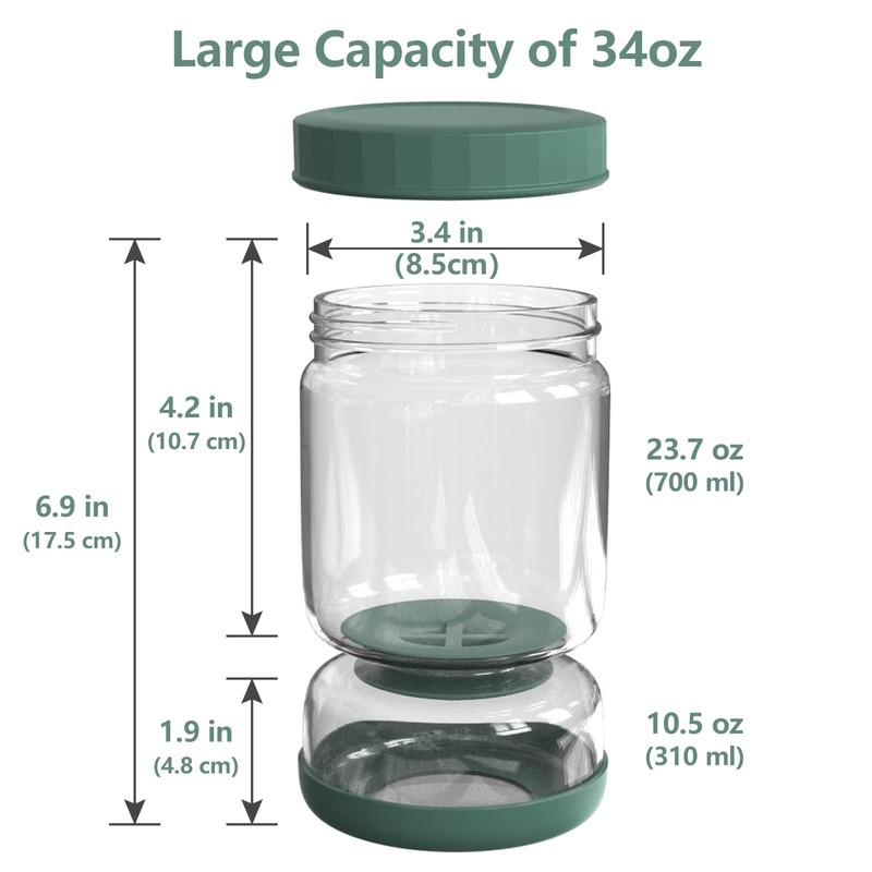 - 【LARGE CAPACITY】The hourglass jar is made of premium lead-free high borosilicate glass with a thickness of 3.3mm. It's safer than plastic and odorless. It is more durable than steel material and will not be corroded. The size of the oliver jar is 4*4*7inch,the capacity is 1000ml/34oz,the upper half capacity is 700ml/23.7oz,and the lower half capacity is 310ml/10.5oz.You can also remove all the rubber parts before rinsing and it is dishwasher safe.