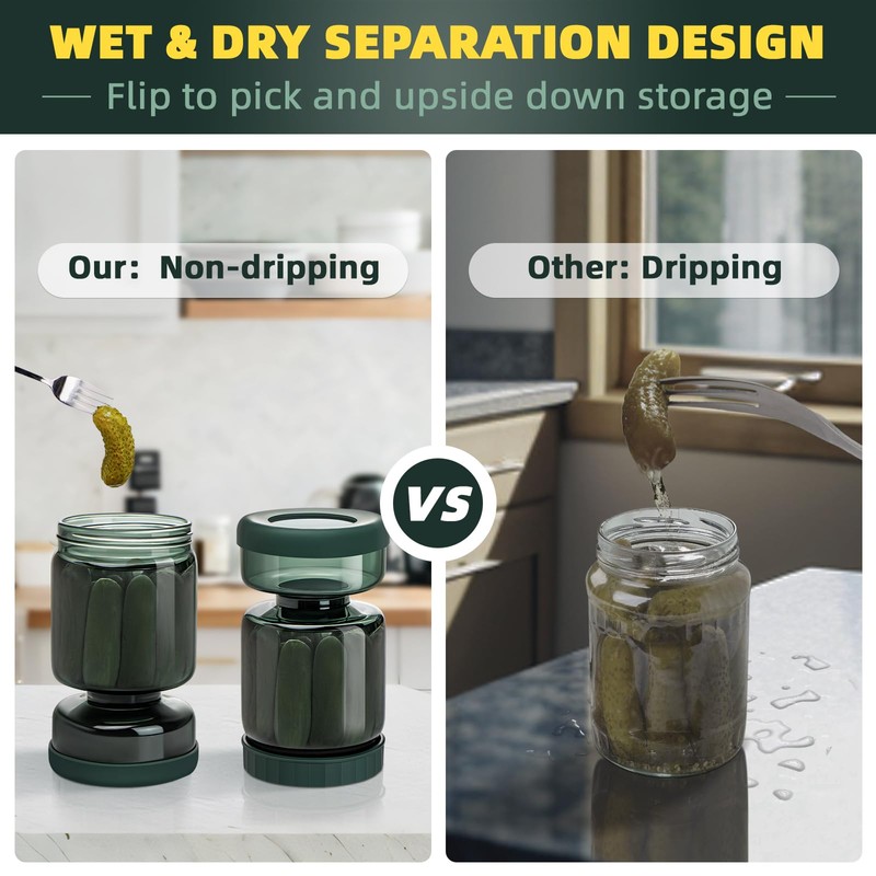 - WEITHALSIG UND VIELSEITIG EINSETZBAR:Der Gurkenhalter ist mit einem breiten Mund entworfen und hat einen Durchmesser von 8,5 cm / 3,4 in an der Spitze, so dass es einfacher ist, Lebensmittel nachzufüllen und zu reinigen. Das Luvan Gurkensaft-Trennglas Flip funktioniert auch gut mit Obst wie Maraschino-Kirschen, Ananas-Leckerbissen, Äpfeln und Gemüsezwiebeln, Gurken, Knoblauch, Rüben, Okra, Bananenpaprikaringen, Pepperoncinis und Pilzen.
