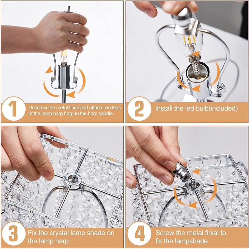 - Easy InstallationUnlike other crystal table lamps that require manual assembly of crystal strings, the strings of our modern bedside lamps are attached to the lampshade. Save assembly time, avoid the risk of scratching your hands. Quickly Finish the Installtion within two minutes.