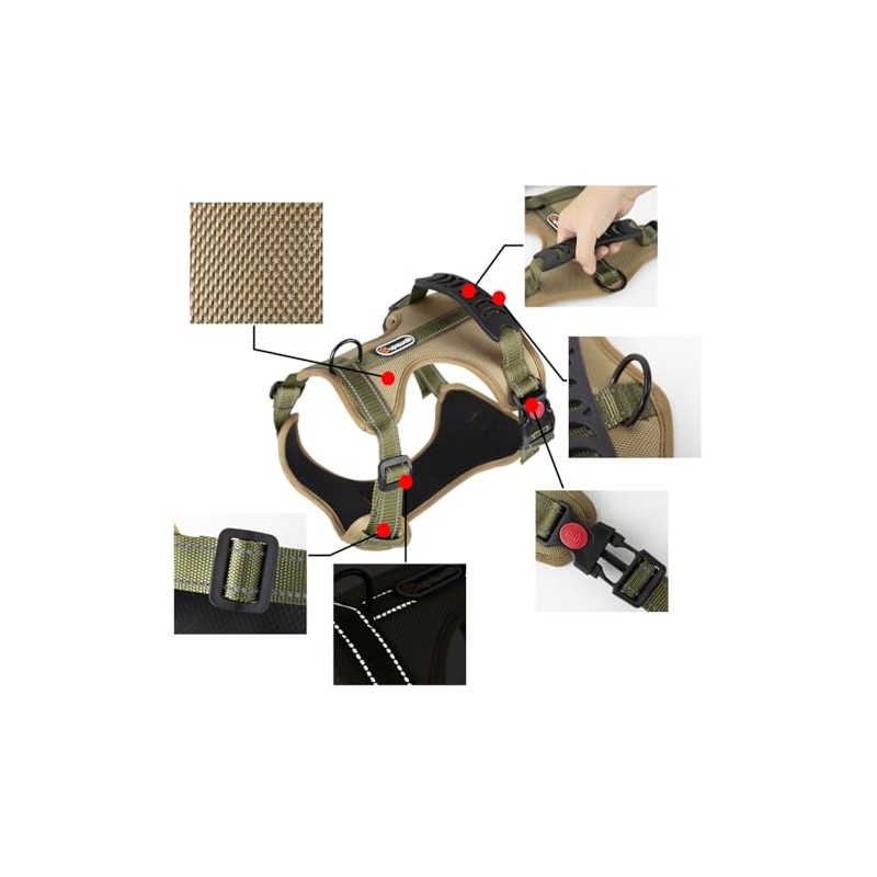 - Reinforced top handle on the back of the harness allows you to quickly grab your dog when needed—perfect for navigating tight spaces, lifting over steps, or controlling behavior during training. Offers better handling for energetic or reactive dogs.