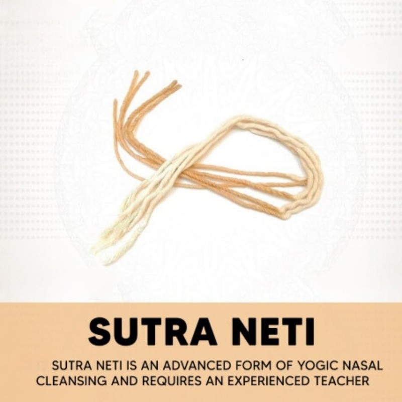 - Sutra Neti is performed by passing a cord made of rubber catheter into the nose through one nostril and then out via the mouth.