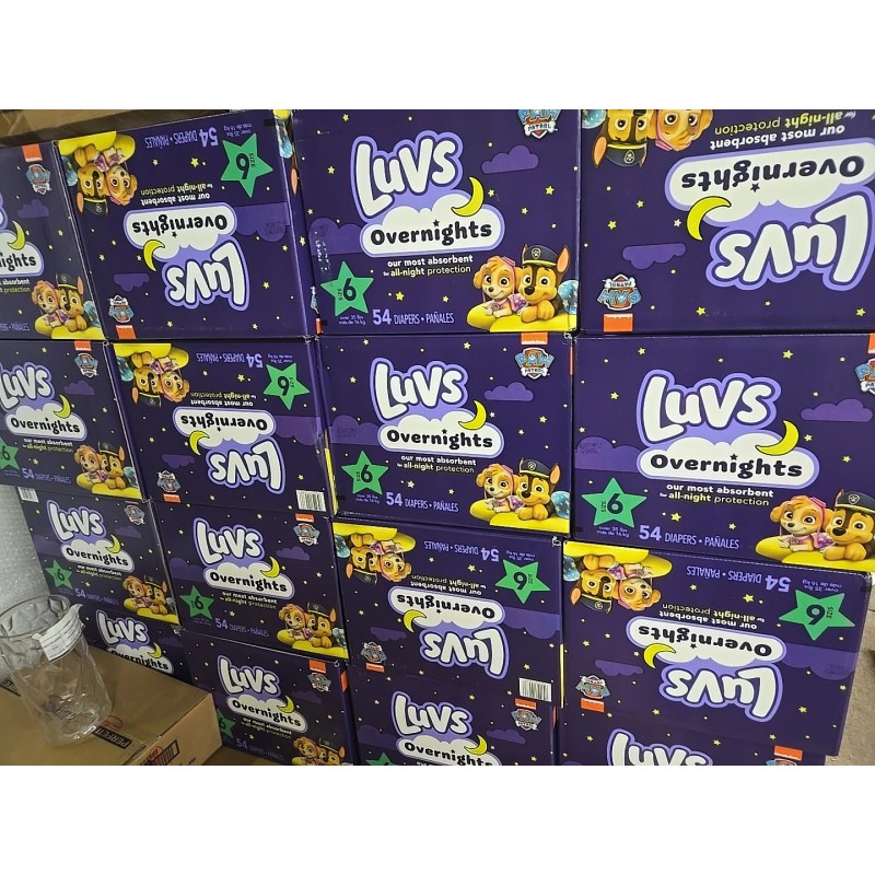 The product is Luvs Diapers Overnight Size 6, designed for babies. This particular box contains 54 purple-colored diapers, making it a convenient choice for parents looking for overnight protection for their little ones. Luvs is the brand known for providing quality disposable diapers, and this specific product is tailored to offer extended absorbency and leakage protection during nighttime use. Perfect for babies in size 6, these diapers ensure a comfortable and dry experience for your child throughout the night.