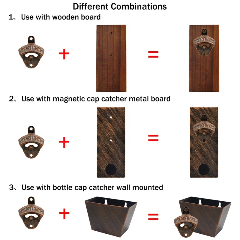 - Wall-mounted design: These screw in wall bottle openers are perfect because they take up no drawer space and can be hung right above your trash can, recycling bin or bottle cap collection box