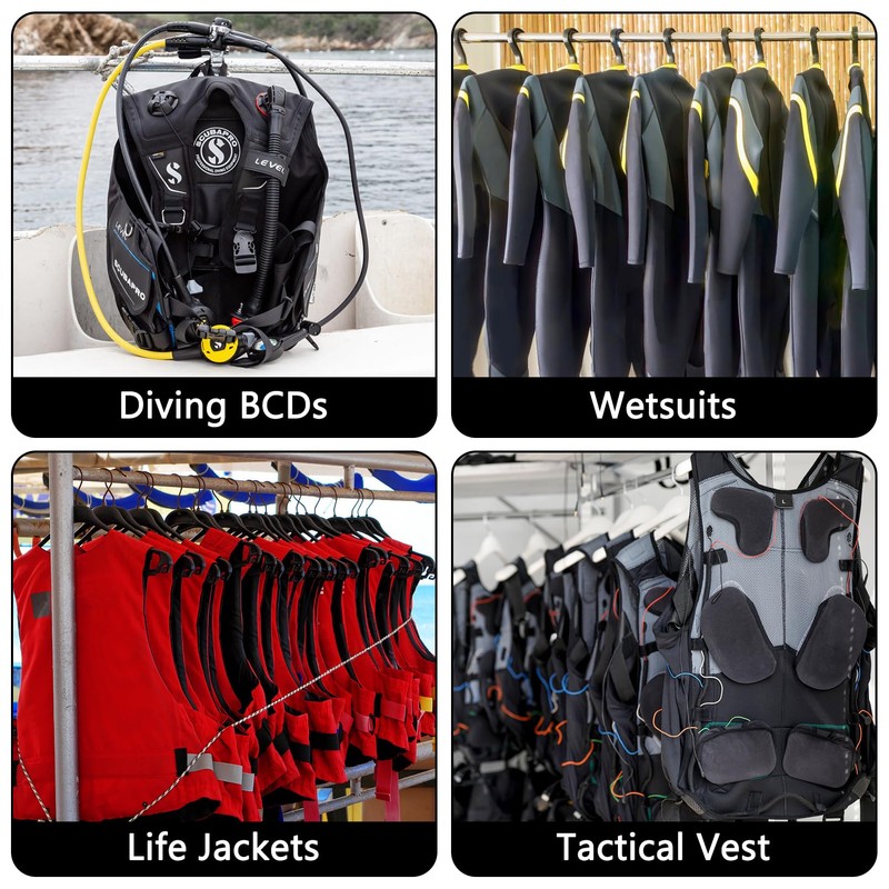 • VERSATILE & SPACE-SAVING: Compact design fits tight spaces (boats, RVs, lockers, wardrobes, closets). Great for dive shops, instructors, or avid divers. Also works for tactical vests, life jackets, and other water sports gear