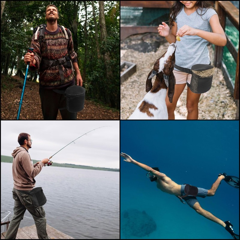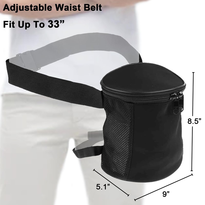- Small size mesh storage bag size 8.5’’H x 9.0’’L x 5.1’’W, cylindric shape, adjustable waist belt fits up to 33 inch, suitable for most adult and youth