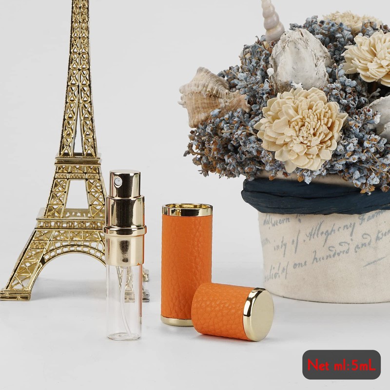 LUWOO Tragbare Parfümflasche für Reisen, Mini-nachfüllbarer Parfümspender, 5 ml, Kunstleder, auslaufsicher, Zerstäuber, Sprühflasche, 3 Stück
