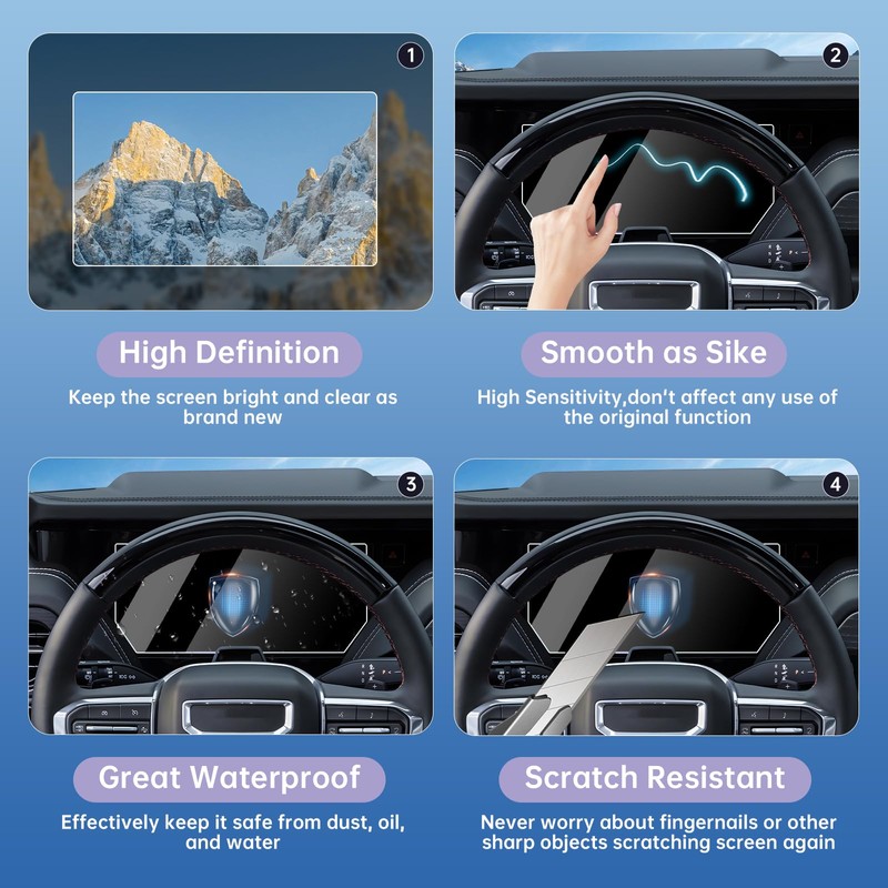 - Easy to Clean & Maintain — The surface of the nano screen protector is smooth, it is not easy to accumulate fingerprints and dirt, and it is relatively easy to clean. In addition, GMC Yukon 2025 accessories,GMC 2025 Yukon screen protector is durable and usually does not need to be replaced frequently, which makes it more economical in long-term use
