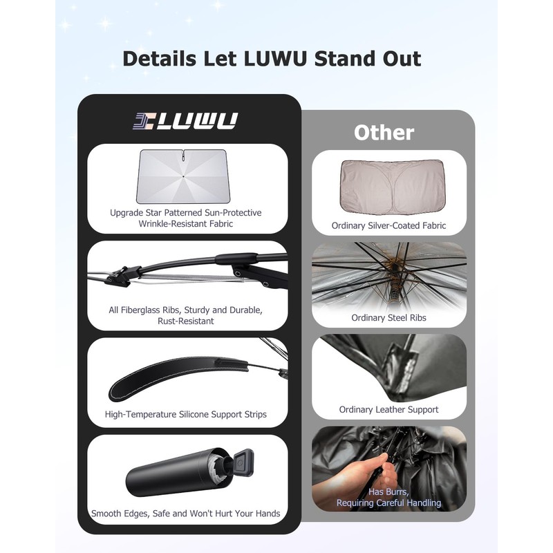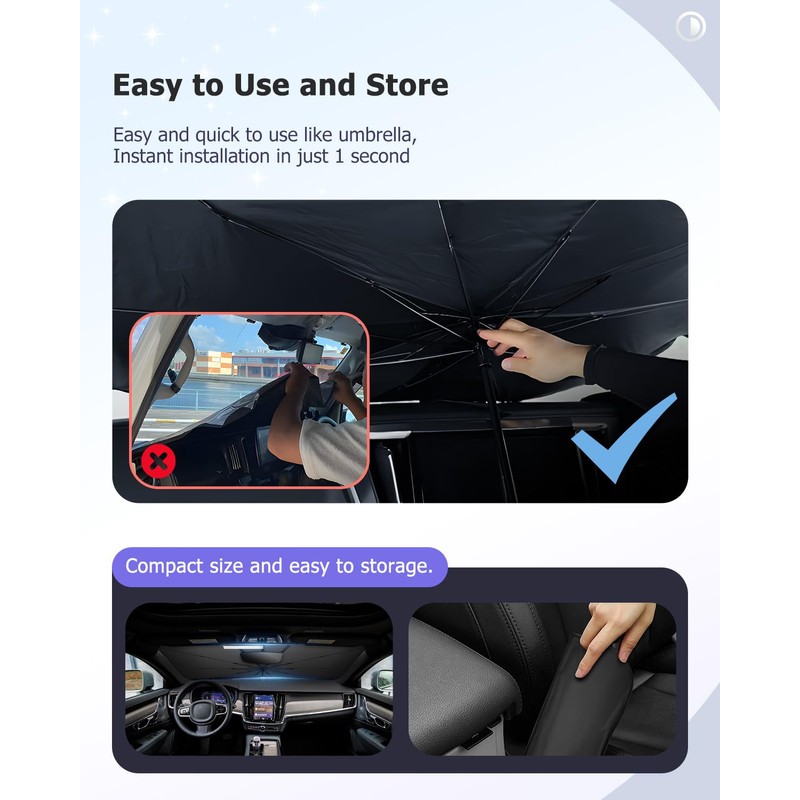 - Erweiterte Ecken fr Perfekte Abdeckung Die Ecken stehen 5 cm ber, sodass sie eng ber die Windschutzscheibe passen und eine vollst?ndige Abdeckung gew?hrleisten. Sie ist nicht nur fr die Verwendung an Autowindschutzscheiben geeignet, sondern kann auch als Sonnenschutz fr Outdoor-Aktivit?ten verwendet werden. Bei leichtem Regen kann sie vorbergehend als Regenschirm genutzt werden (bitte nicht l?ngere Zeit dem Regen aussetzen).