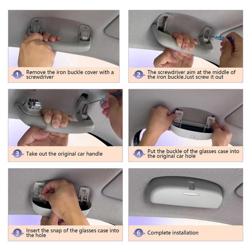 We have installation instructions on the product details page, and the package is equipped with useful installation tools, you can install it yourself in a few minutes.and The sunglass case built-in a spring that can be retracted automatically, so the driver can easily and quickly access your glasses when you need them, one-handed operation.