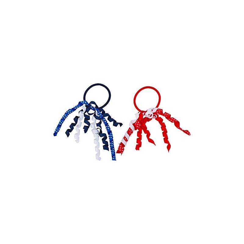 Lux Accessories 2 Pieces Red Blue Polka Dots 90s Inspired Hair Elastics and Ties