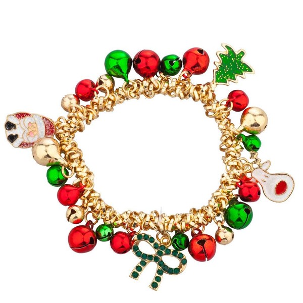 LUX ACCESSORIES Gold Tone Christmas X-Mas Holiday Jingle Bells Charm Bracelet