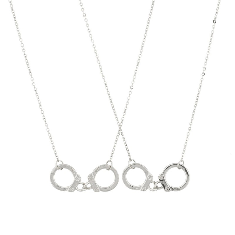 LUX ACCESSORIES Handcuff Partners in Crime BFF Best Friends Forever Matching Pendant Necklace (2pc)