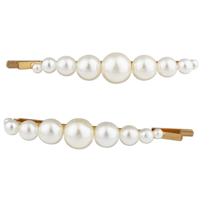 - THE PERFECT GIFT— Our latest statement piece features this elegant hair pins barrette with white pearls assorted sizes and in gold tone finish set of two perfect hair accessories for brides, bride to be, or to wear during events