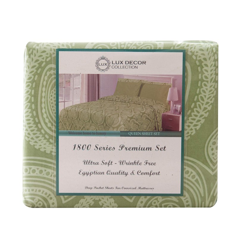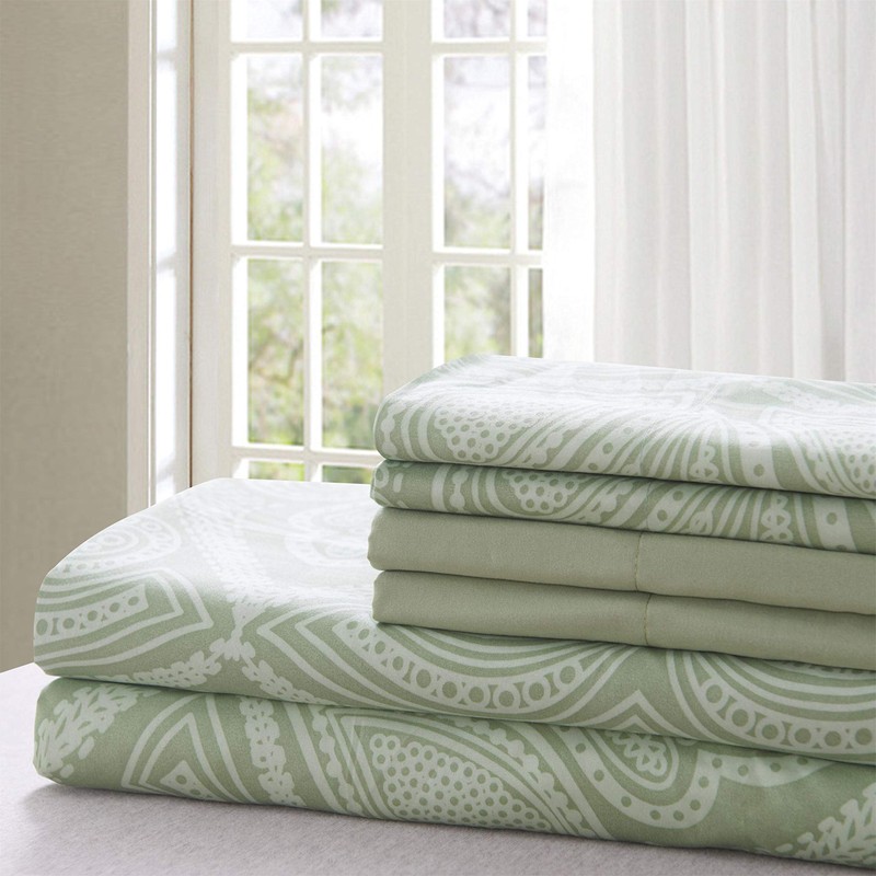 Lux Decor Collection Bed Sheet Set - Brushed Microfiber 1800 Thread Count Bedding - Wrinkle, Stain and Fade Resistant - Hypoallergenic - Deep Pocket Full Size Sheet Sets - 6 PC (Full, Paisley Sage)