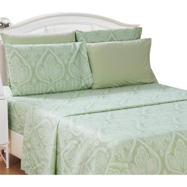 Lux Decor Collection Bed Sheets - 6 Pc Queen Size Sheets - 1800 Thread Count Brushed Microfiber Sheets - 16 Inches Deep Pocket Bedding Sheets & Pillowcases (Queen, Paisley Sage)