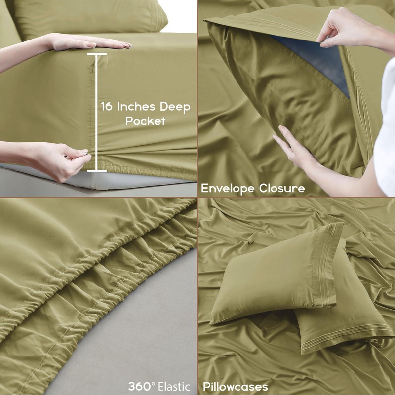 - DEEP POCKET / ALL-AROUND ELASTIC: Fitted bedsheet with deep pocket and all-around elastic fits mattresses up to 16 inches deep.