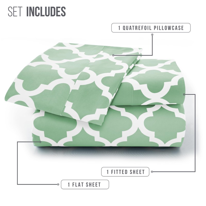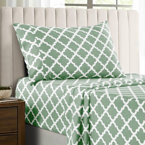 Lux Decor Twin Sheet Set, 3-Pc Cooling Bed Set, Breathable Hotel Style Sheets, Microfiber Sheets Deep Pockets, Easy-Fit, Soft & Wrinkle Free Oeko-Tex Quatrefoil Bed Sheets (Twin, Sage)