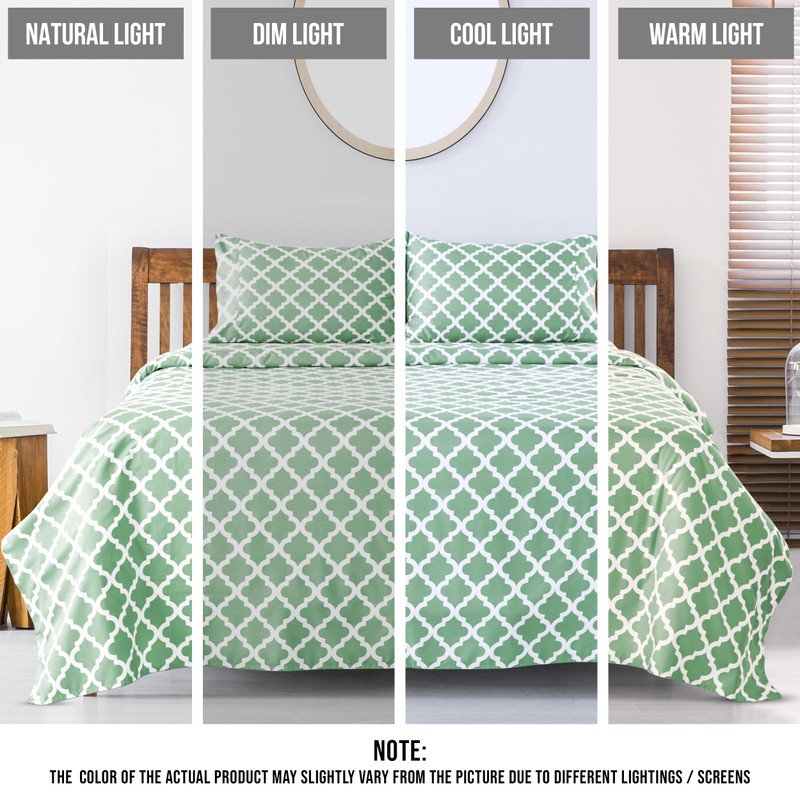 - [INDULGENT COMFORT] Immerse yourself in the sumptuous luxury of our quatrefoil sheets meticulously crafted with up to 100 GSM microfiber. Crafted with marked finesse, the deep-pocket fitted sheet ensures a fine look for your bedroom